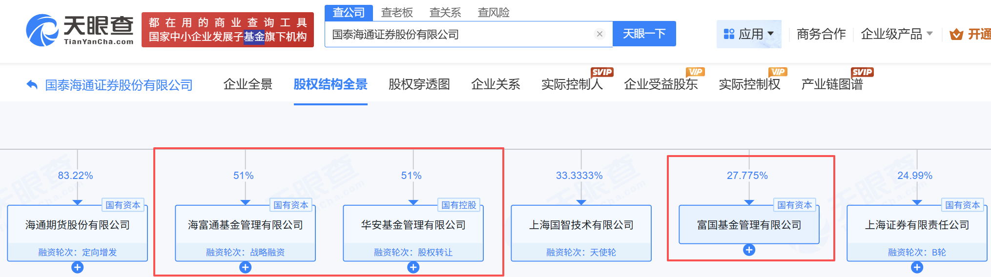 图为国泰海通证券持有的基金子公司及参股公司
