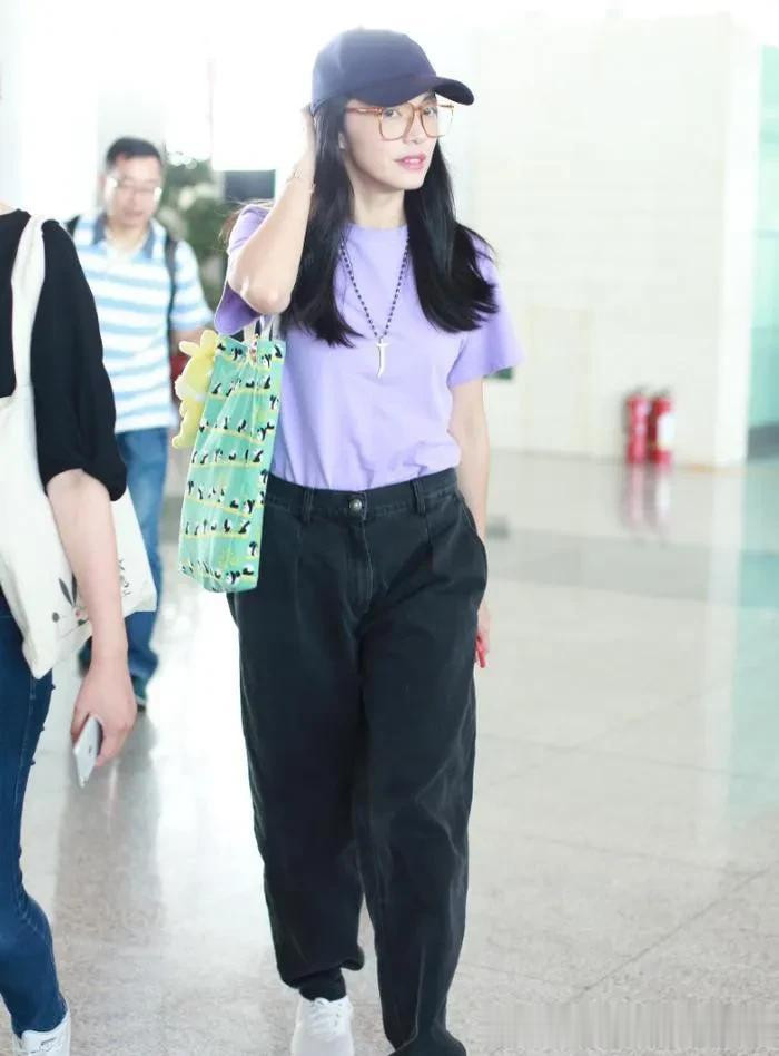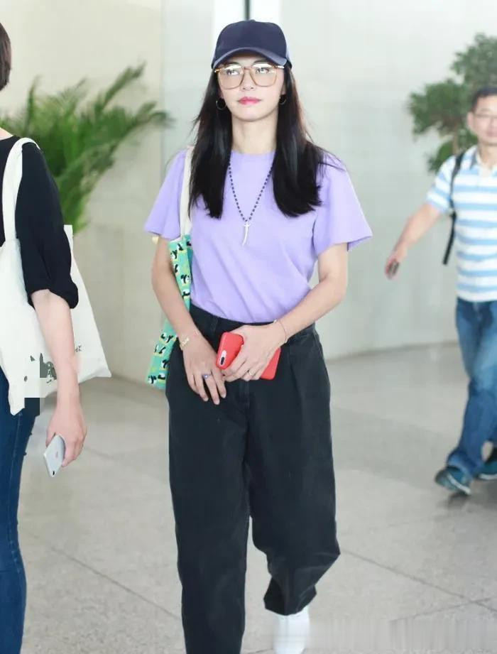 澳门威斯人app下载 姚晨机场私服真会穿! 紫色T恤+玄色阔腿裤, 减龄又漂后