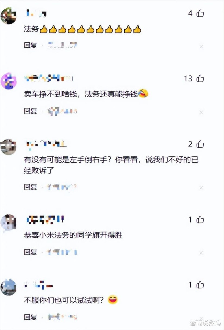 有些东谈主对小米的胜诉进行辱弄、嘲讽,以至有东谈主合计小米是在“靠告状收获”。这种论调在应付媒体上并相似常,有东谈主戏称“小米法务部成了新的盈利部门”,还有东谈主辱弄“以后无须卖手机了,靠打讼事就能发家”。