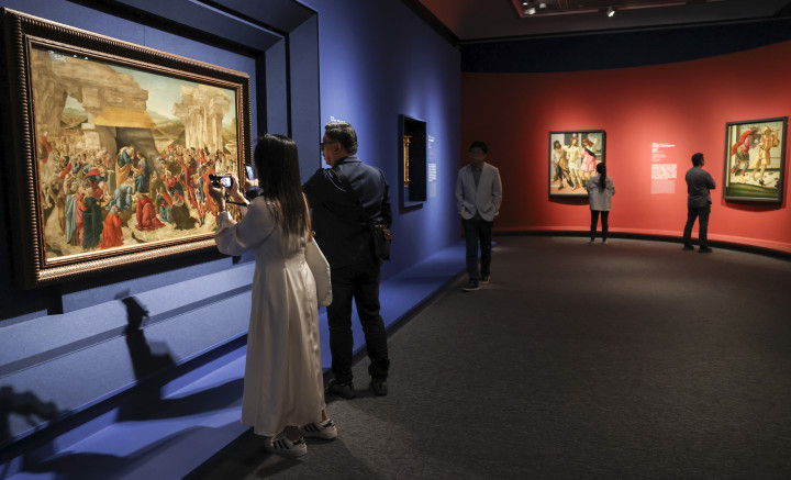 4月27日,中国好意思术馆,嘉宾在不雅赏波提切利木板蛋彩画《三博士来朝》等作品。新京报记者浦峰摄