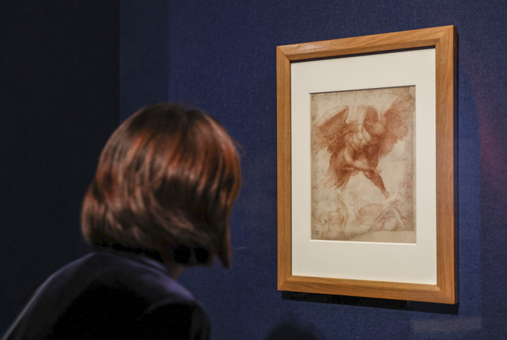 米恢弘琪罗的纸本粉笔画《抢掠伽倪墨得斯》。新京报记者浦峰摄