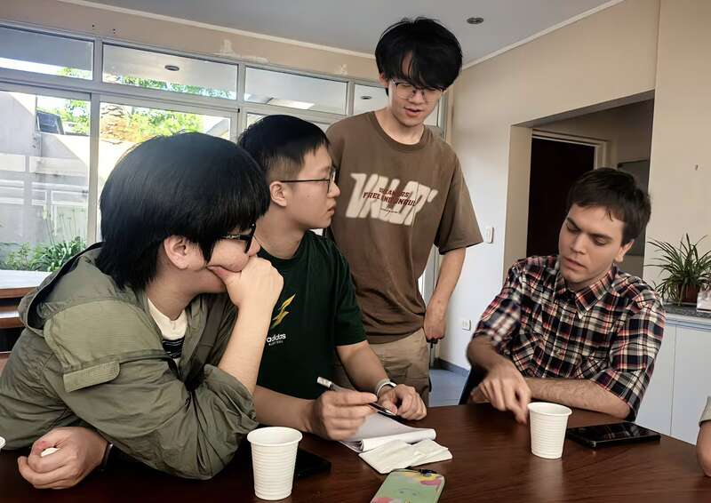 清华大学“海角探革”践诺队员与阿根廷“电锯式改良”支撑者进行相易。清华大学供图