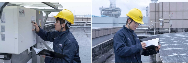 在申能崇明发电,开辟治理部责任主谈主员在屋顶光伏区域进行巡检,重心排查光伏逆变器运转景象和遮雨棚积雪情况等可能激发的发电效果下落和开辟安全隐患,第一时期纪录措置,全力确保极点天气下光伏电站可靠运转。