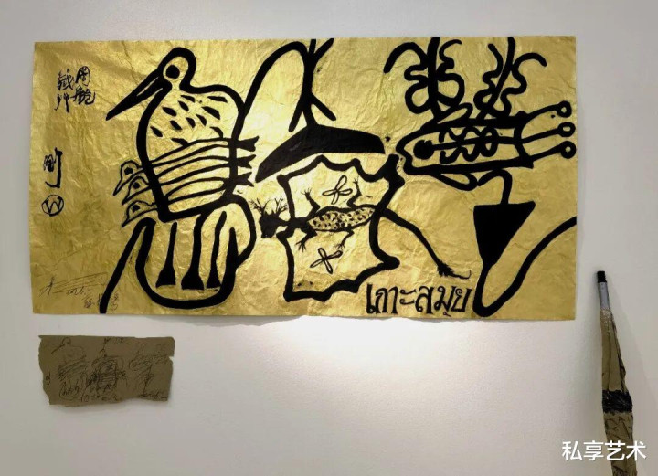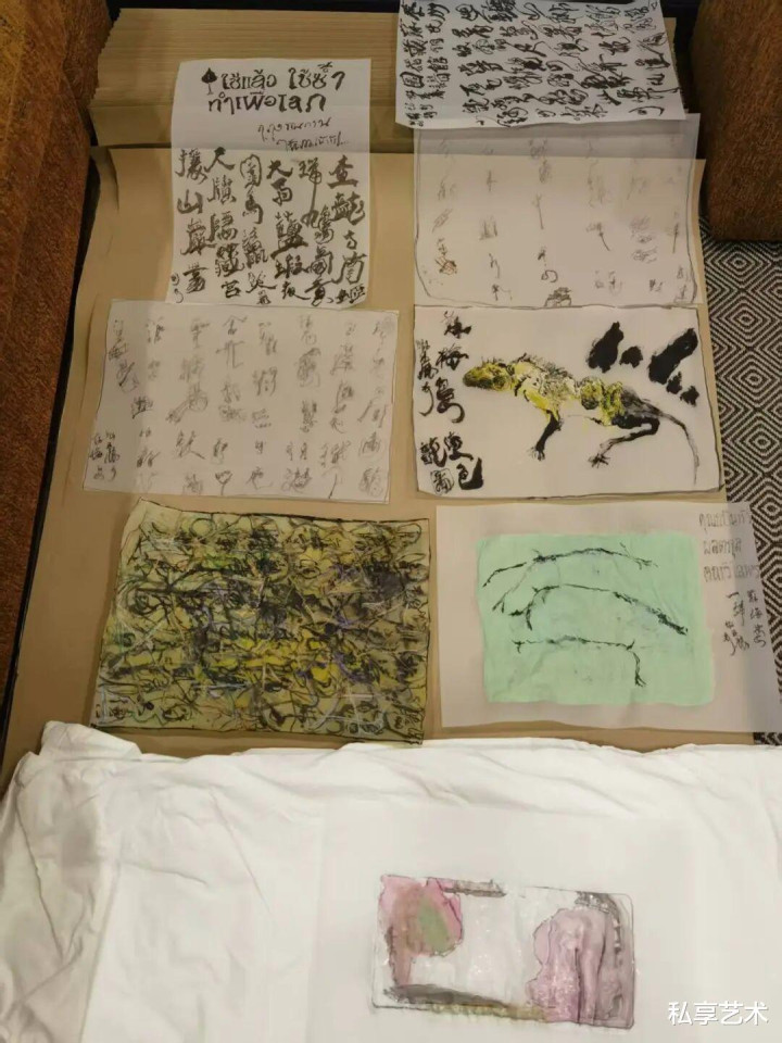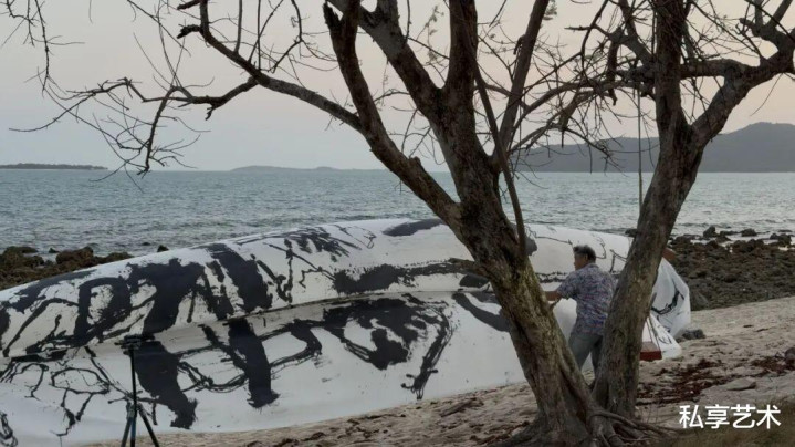 这次苏梅岛驻留,艺术家基于在东南亚三个多月的游历行程中,废弃了对材料与前言畛域的预设别离——不再别离宣纸与非宣纸,不再界定心情与非心情等。诸材料、诸前言、诸文化素养被同期置入并吞创作场域,摆脱和会、即时生成——一种多源并置、无主次结构的绽放实验。不同于既往体系化的创作结构,这次驻留更像一次绽放性的实验——材料、结构与象征在当然环境中交织,使书写成为与风、水与光同频振动的体魄行径。