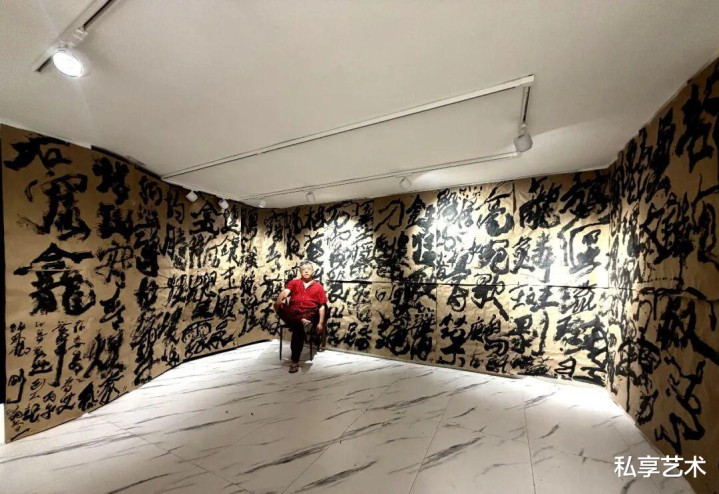在持久创作中,魏立刚永久尝试将汉字从可读文本中抽离,使其革新为结构、节律与能量的组合体。书写不再承担敷陈与抒发的功能,而成为一种介于体魄、时刻与空间之间的行动神态——一种意志在场中的夸耀。