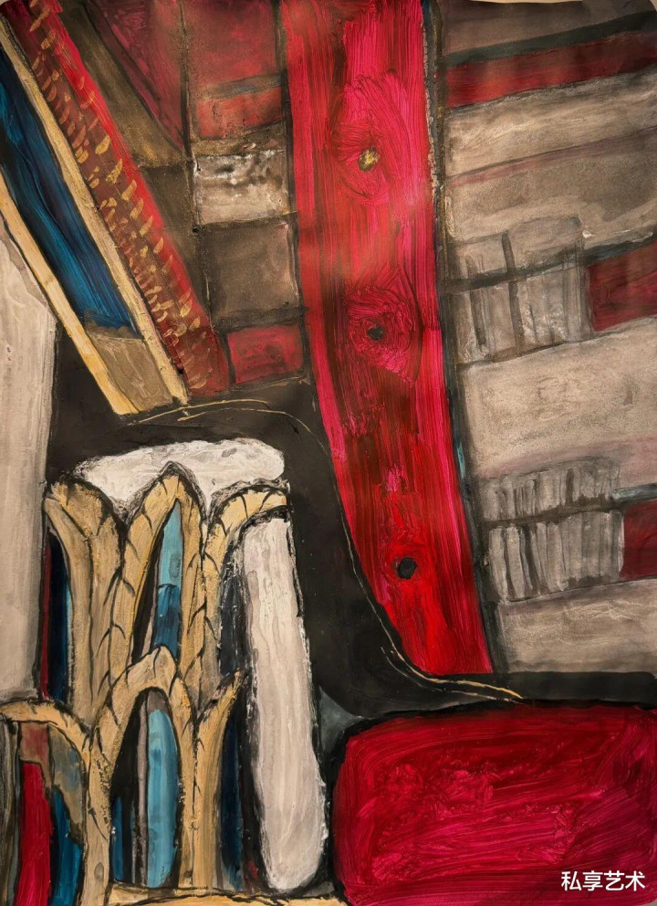 展览空间保留了创作现场的生成景色,作品以近乎手稿的神态径直参加空间,仿佛刚刚完成,便当然镶嵌墙面。未加修饰的呈现神态,使不雅者得以直面创作的温度与呼吸,呈现出一种未被完成感遮蔽的现场气味,仿佛创作仍在握续。