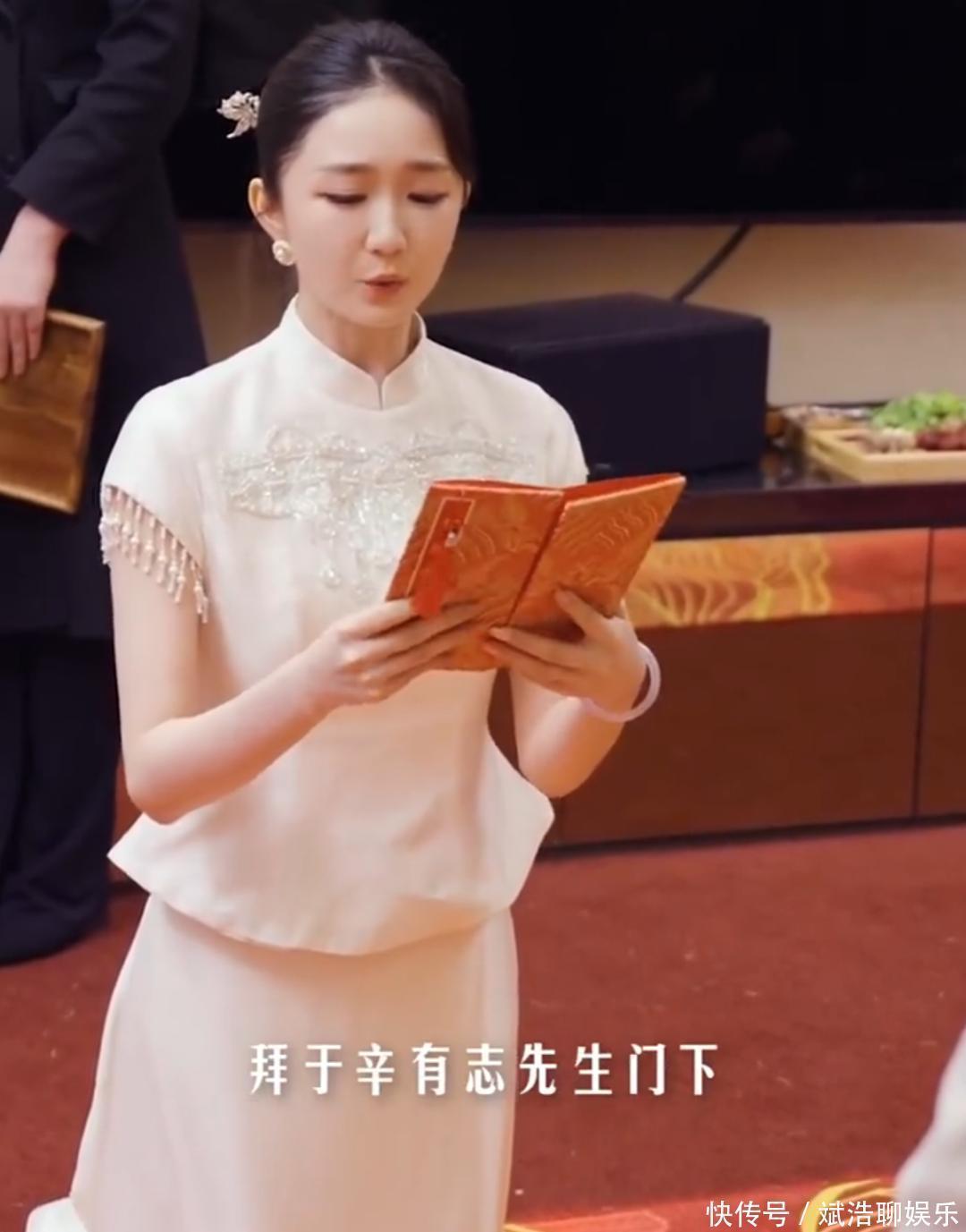 徐婕跪读的拜师帖这样写说念:“辛有志先生在上,弟子徐杰叩拜,师说念巍巍,如岳如渊,弟子徐杰,失魂陡立拜于辛有志先生门下,先生十年心血,半生修持,一旦授予弟子,此恩此德,山高水长,愿以余生,陪同左右。”