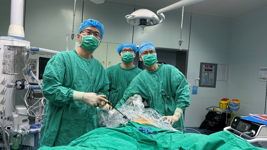 奉贤区泌尿外科专科定约厚爱东说念主、奉贤区中心病院泌尿外科主任刘峰开展手术