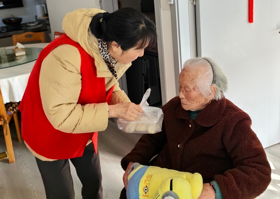 “彭大姨,开门呀,给您送饺子来啦!”1月20日中午时间,金龙住户区的志愿者端着刚出锅的饺子,敲响了乐龄老东说念主彭小妹的家门。