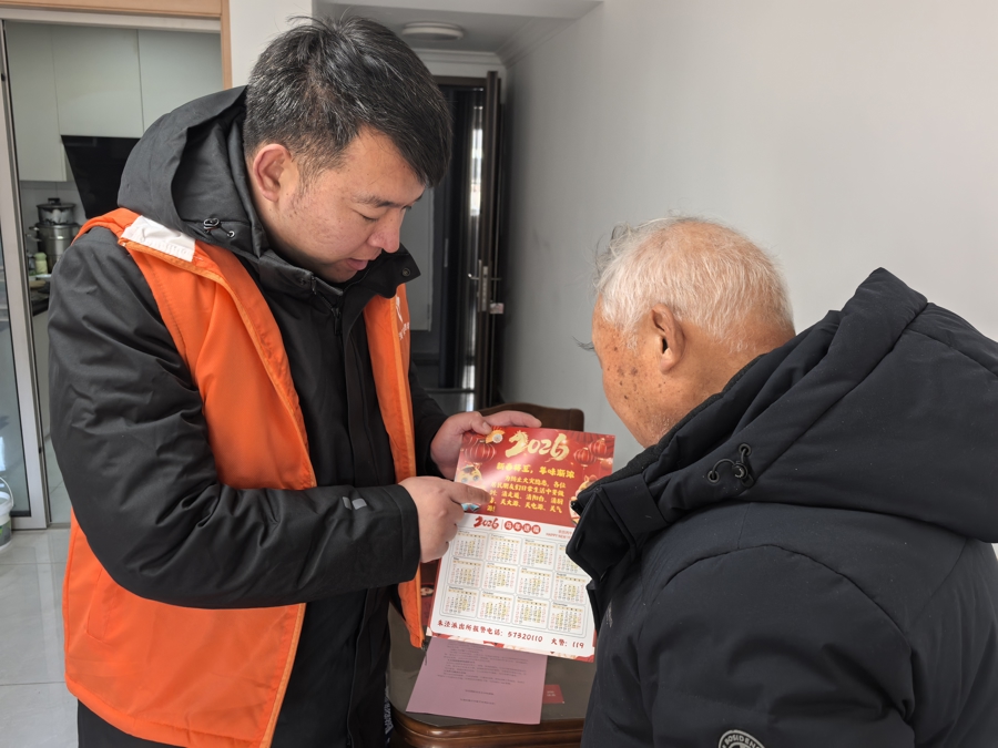 居委会责任主说念主员给老东说念主送去2026年挂历和温馨指示
