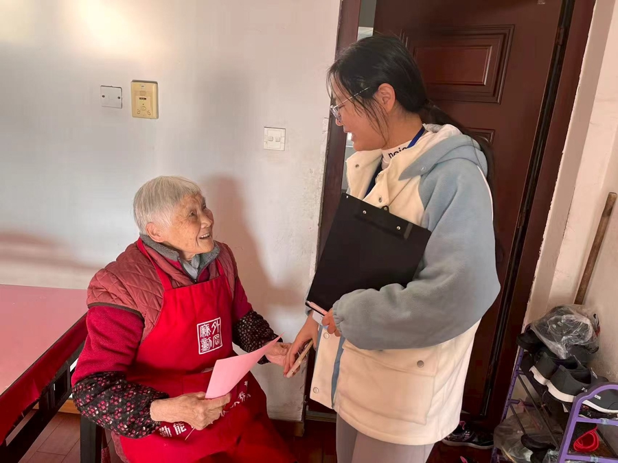 嘉定区外冈镇佳苑社区的使命主说念主员兵分几路,挨门上门探听社区乐龄、孤寡老东说念主。