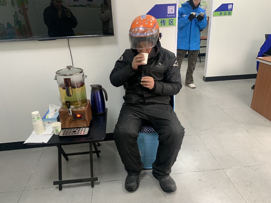 娄塘社区居委一大早煮好了红枣茶放在驿站内,呼叫外卖小哥、环卫工东说念主等户外使命者进去休息、散散凉气,喝一杯热枣茶暖暖身子。