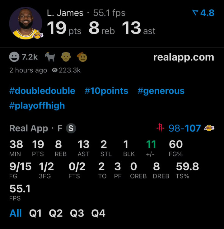 北京时间4月19日,NBA季后赛西部首轮G1,湖东说念主主场107-98力克火箭,大比分1-0朝上。詹姆斯全场出战39分钟,孝顺19分8篮板13助攻的准三双数据。