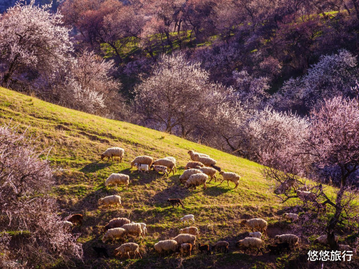 4月上旬去吐尔根杏花沟再见死心纵欲,漫山杏花盛放,是新疆春天最动东谈主的方式。