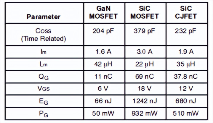 影响开关特质的主要各异源于器件的输出电容(COSS)。频繁,SiC MOSFET具有较大的COSS,这是由于其需要更大的裸芯尺寸才气杀青与GaN HEMT或SiC CJFET卓越的导通电阻(Rds,on),如表2所示。该电容与励磁电流共同决定了半导体器件的开关赈济速率。