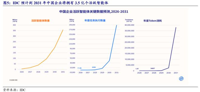 凭据IDC数据,中国企业活跃智能体数目将在2031年冲破3.5亿限制,年复合增长率达到135%以上,同期由于智能体任务践诺密度的增长和任务复杂度的耕种,也将带来智能体Token破钞年均超30倍的指数级跃升。